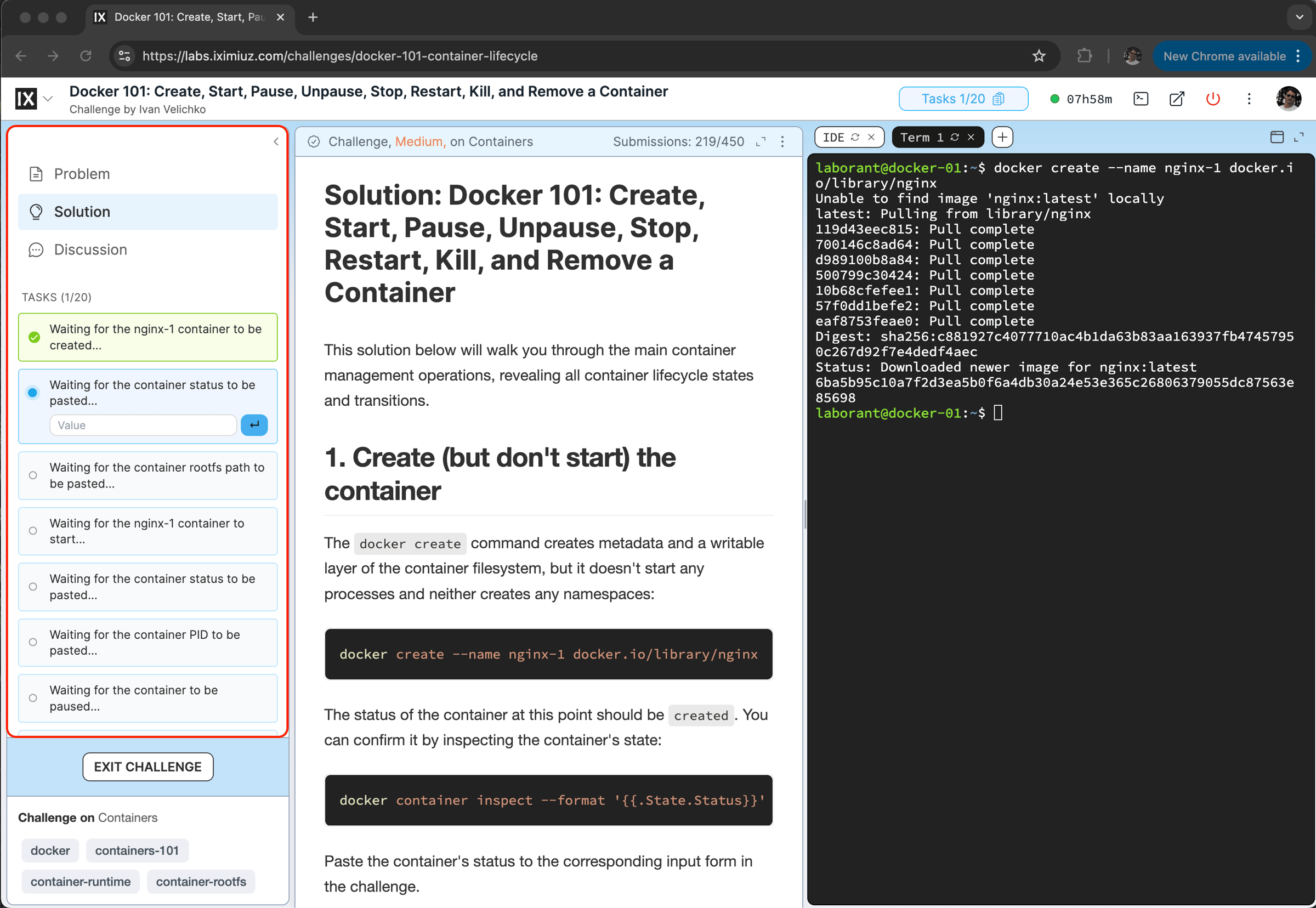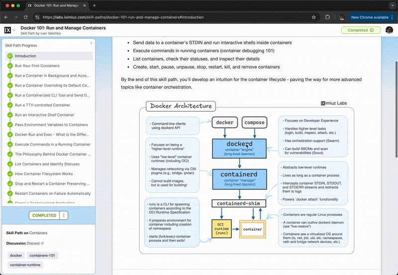 If you want to share your server-side experience or the idea of learning in public resonates with you, come join us as a community or independent author! You'll get a cool public author profile that will be a great addition to any technical resume. And who knows, maybe content creation will also become a profitable side gig π A bunch of UI/UX improvementsThe learning experience at iximiuz Labs has also improved over the past couple of weeks. Lots of people have asked about a "full-width" mode for tutorials, challenges, and course lessons, and I finally had a chance to enhance the content page layout: In addition to the enhanced layout, challenges now have a handy sidebar with tasks, so you don't lose track of them when switching to the Solution tab. And you can even hide the content section completely, freeing up real estate for the terminal window while leaving the tasks in the sidebar open. Course lessons didn't go unnoticed, either - the newly added sidebar there helps navigate the course materials much better than the old syllabus widget in the awkward right sidebar (gone now) "borrowed" from the course's front page. Skill paths and training programs got a new, more structured look, too. Historically, both skill paths and training programs were presented as a vertical "wall of text" on a single page, with no way to navigate the often lengthy content, and I kept hearing from students, especially trainers, how suboptimal this representation was. Not anymore! Finishing the streak of content UI improvements, a new Progress Reset button was added for tutorials, courses, lessons, challenges, and skill paths (roadmaps aren't supported yet - but instead you can reset individual pieces of materials linked from a roadmap). Handy if you want to brush up on the materials you've previously completed before an interview, or to keep your hands-on skills sharp. Last but not least, all dashboards (main, author's, instructor's) now have the current tab reflected in the URL fragment (hash), allowing you to share a link to a specific section of the dashboard. Plus, dashboard sidebars were narrowed, the tab bar was made sticky, and content filtering and pagination were added, making the dashboards much handier to use on both desktop and mobile. Ah, and the Playgrounds tab of the main dashboard was consolidated and now shows all Running, Persistent, your Custom, Recent, and Popular playgrounds (with Running and Persistent and updated in real-time). New playground/labctl feature: Auto Port ForwardsIt's pretty common to fire up a playground, launch a few services in it (a web app, a database, Kubernetes API, etc.), and then make them accessible locally with the labctl port-forward command. Before persistent playgrounds, this was a rather one-off action, so running the port-forward command each time was ok-ish. However, the addition of persistent playgrounds led more people to use the same playground instance for day-to-day tasks, including coding with agents. But once you start using a playground with certain services in it daily, running the port-forward command over and over again becomes tedious! βDivyendu Singh brought it to my attention, and I paired with Claude Code to ship a few new flags: